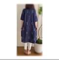 ネイビー色なのでわかりにくいですが、生地幅たっぷり裾に向けて広げて、裾から20センチで、切り替えを入れて、内側に少し入れたバルーンなデザインにしてみました。