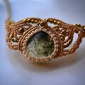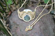 なぜか癖になる石プレーナイトをチョーカータイプにマクラメ編み装飾を施しました。インパクトある組み合わせと馴染みのある色味の蝋引き糸を使用して、ゴージャスでエレガントな雰囲気のアクセサリーに仕上がりました。