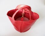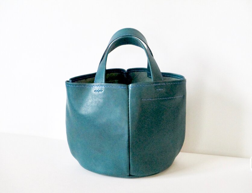 イタリアで1000年以上の歴史をもつ『バダラッシ カルロ社」の革を使い、オルテンシア(緑青)のカゴ型バッグを作りました。ブッテーロと並ぶ植物タンニン鞣しの高級牛革です。