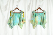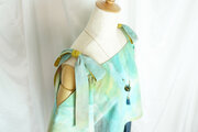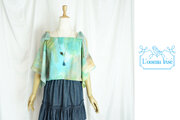 流水染めされた綿生地で、ひらひらの肩見せブラウスを仕立てました。