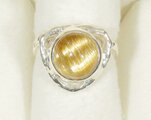 透明感のとても綺麗なドーム型の水晶の中に、キャッツアイの様な線状の輝きを見せる金の針がほぼ全面に入った、高品質のルチルクォーツを留めた指輪です。