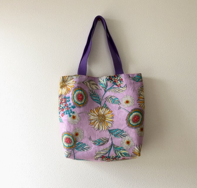 ラベンダー色の花柄生地を使用したトートバッグです。