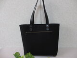 チャコール地にモスグリーンの刺繍がしっかりと入り上質さがうかがえるミナペルホネンの生地とコットンの黒地とでトートを作製しました。