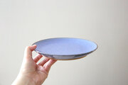 紫陽花を思わせる紫がかったブルーに白い結晶が舞う、紫陽花結晶釉のお皿です。