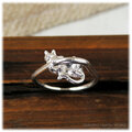 リングにまとわりつく猫のリング。 また指と指輪の間に入り込んでいます。