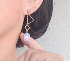 コロンとした乳白色のパーツと三角、四角形のカッチリとした丸さと直角の相反するパーツを合わせたイヤリングです。