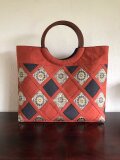 いつも素敵なバッグをありがとうございます。今回も大満足です。柿渋染めとバティックの渋い柄の取り合わせが絶妙です。丸い木の取手は持ちやすく、アクセントのボタンもいい感じ。華美さんのバッグはとてもセンスが良い上にこまかいところまで配慮が行き届いており、大変丁寧なお仕事です。またご縁がありましたらよろしくお願いします。