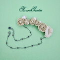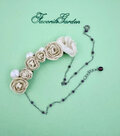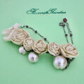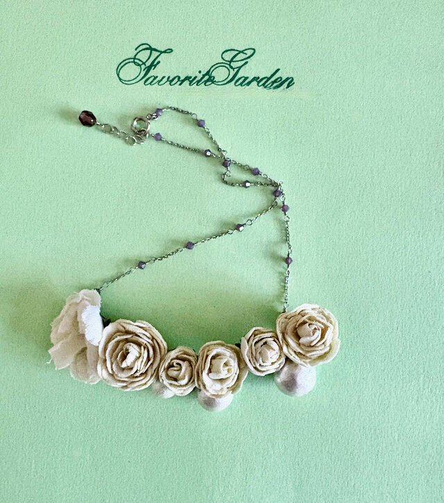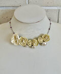 ややアイボリー気味に染めて作ったフラワーたちとコットンパールを配して作った上品で可愛いネックレスです。