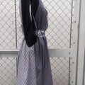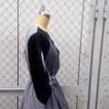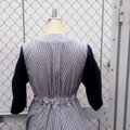 ストライプ柄などの三種の素材を組み合わせたアシンメトリーのワンピースになります。