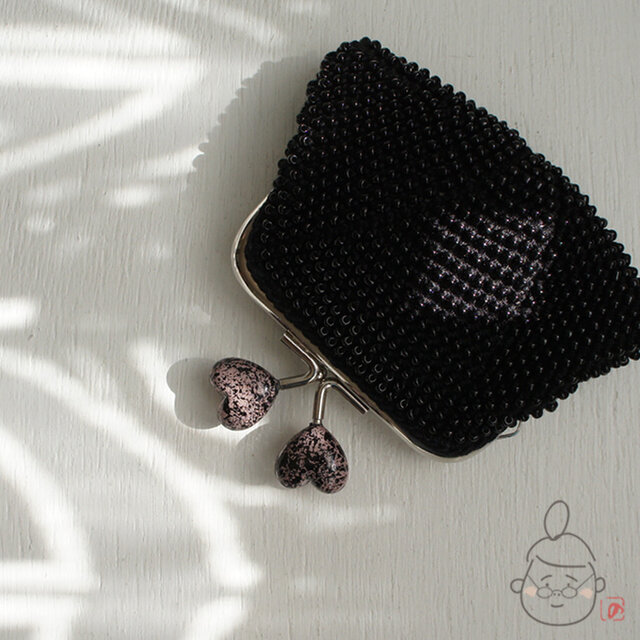 ばあば作♡総ガラスビーズのがま口(splash♡heart・1250)