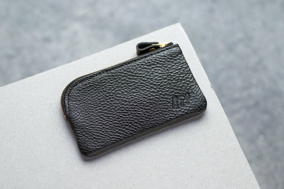 L字ファスナーポーチ コインケース 小物入れ 姫路産シュリンクレザー ブラック apo-12ns