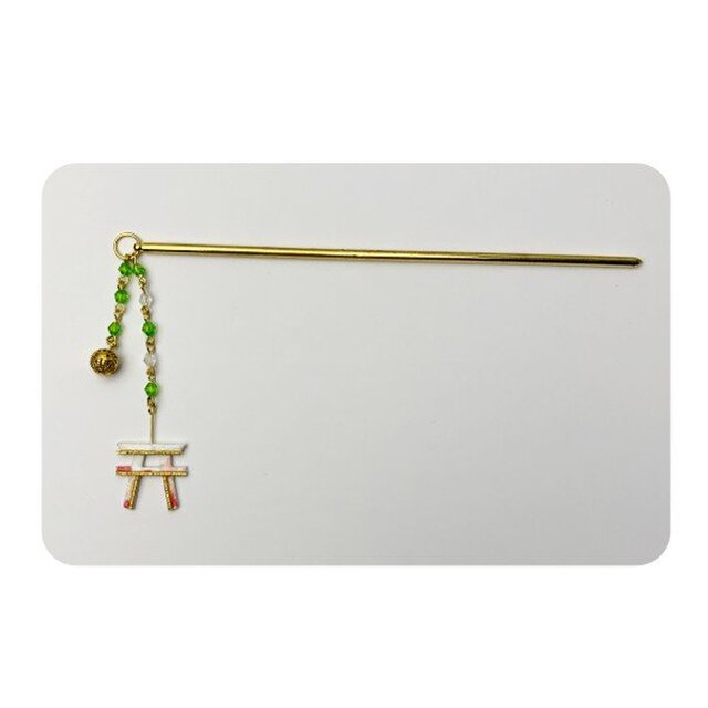鳥居 約w22mmx20mm ビーズ 約3mm 簪の長さ150mm