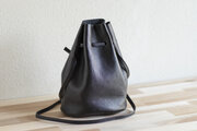 マットシュリンクレザーで巾着バッグが出来上がりました。