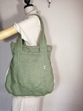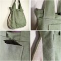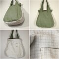 麻生地でファスナーショルダーバッグを作りました。まちは同じ麻生地のお色違いで自然なアクセントになっております。メインの麻生地のお色はオリーブグリーン色になります。