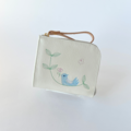 刺繍革財布『幸せな青い鳥』牛革☆ホワイトクリーム色☆(二つ折り財布)