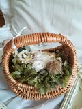 コロンと可愛いバスケットにプリザーブドフラワーやドライフラワーを贅沢にたっぷりと入れたバスケットアレンジです。