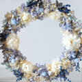 インテリアに合わせやすい白やブルーにシャンパンカラーの紫陽花を合わせ、落ち着いた雰囲気に仕上げました。