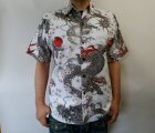 しっかりした織生地に龍と桜が描かれた粋なシャツ