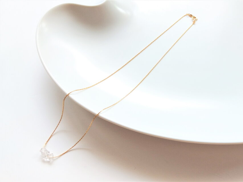ハーキマーダイヤモンドを3粒トップにあしらったネックレスです。