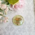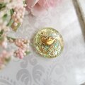 チェコガラスボタンにポニーフック用の金具をとりつけています。