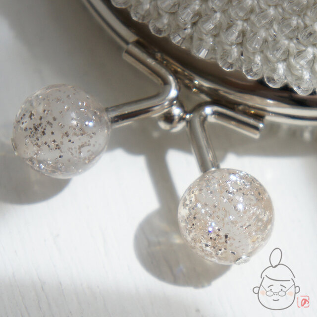 口金 : シルバー×ラメ入りクリア、8.5cm、丸型