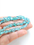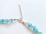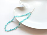 マダガスカル産で透明度が高く、明るいブルーの発色がとても綺麗なアパタイトを使用しております。色々とデザインを考えてみたのですが、アパタイトの良さを活かしたシンプルなものが一番という事で、あえてこのような定番のデザインにしたました。
