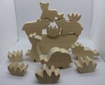 6つの動物と6つの草むらがなかよく台の上で遊びます。