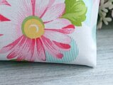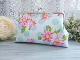さわやかカラーにストライプのドットがかわいいマーガレット柄のがま口ポーチでございます