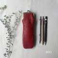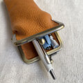 本革が放つ温かみと、ワンポイントの刻印が魅力のペンケース。
