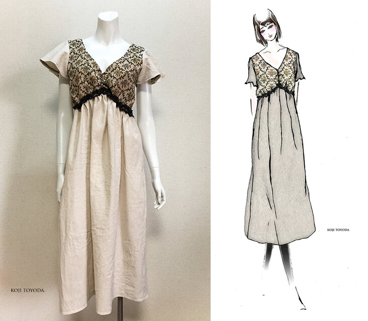 【1点もの・デザイン画付き】ゴブラン織り&綿麻ゆったりロングフレアーワンピース(KOJI TOYODA)