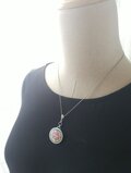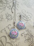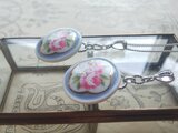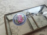 ヴィンテージ、陶磁器製の「薔薇とわすれな草」のカボションでお作りしましたネックレスです。