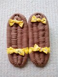鼻緒がきつかったり、緩んだりしたら布ぞうりの裏で鼻緒を結びなおしてください。