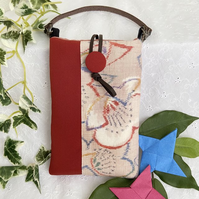 紬(正絹)の着物リメイクしたスマホポーチです。