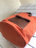 こちらはアルバートンのアーミーダックバイオウォッシュ生地にレーザー刻印(英字)したバケツ型のトートバッグです。