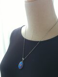 ヴィンテージ エナメルBlue薔薇(25×18㎜)アンティークSilverネックレス