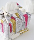 リバーシブルキューブティッシュ・容器付き(USAコットンNYニューヨークビル柄×ピンクと黒のチェック)