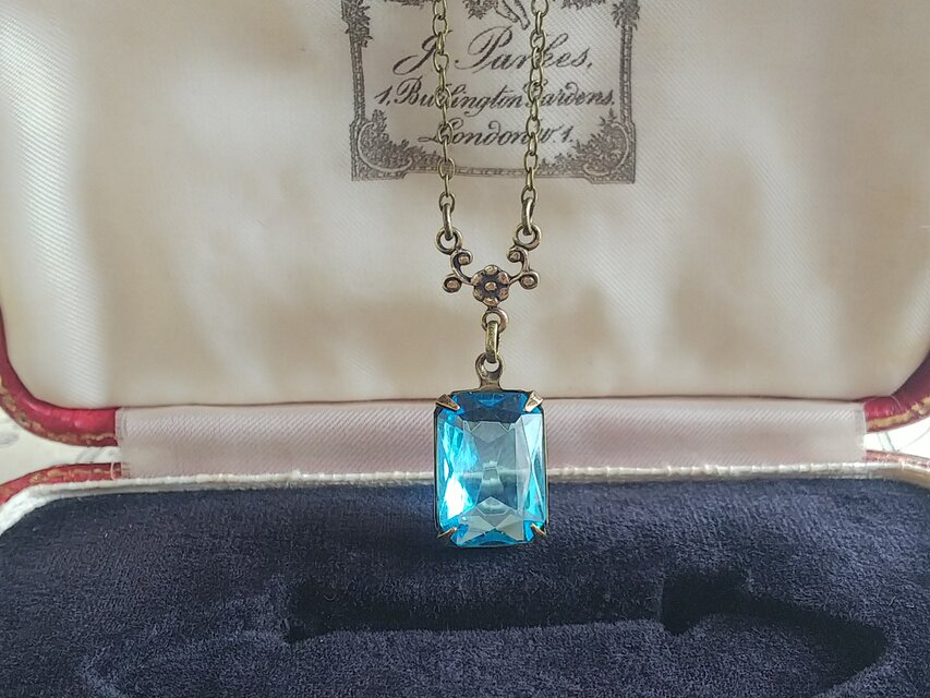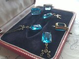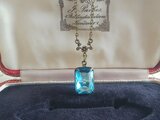 1960年代チェコヴィンテージ、約14×10㎜のアクアBlueのGlassでお作りしましたネックレスです。