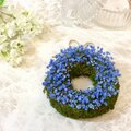 こけ玉にブルーの2種類のかすみ草を植えたミニリースです♪