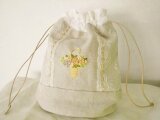 反対側はベルギーリネンにお花のモチーフレースをアップリケしています
