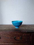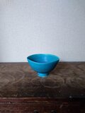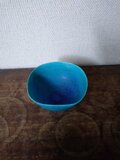 トルコ青色の小鉢です。鮮やかな色と形が特徴です。
