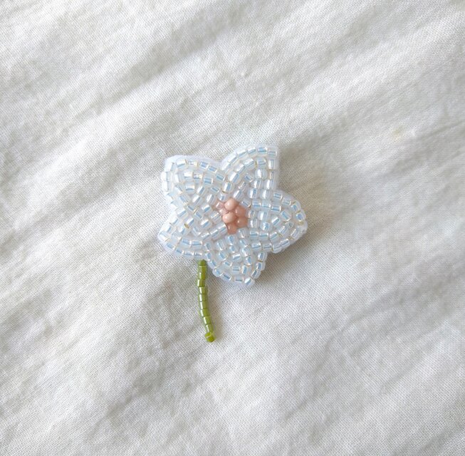 ビーズをひと粒ずつ刺繍をした小さなお花のブローチです。