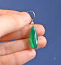 半透明で新緑のような鮮やかなグリーンが清々しいグリーンオニキスを使用したK18フックピアスです。