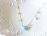 14kgf*アマゾナイト(マロンカット)×レモンクォーツ×オレンジカラージェイドのネックレス
