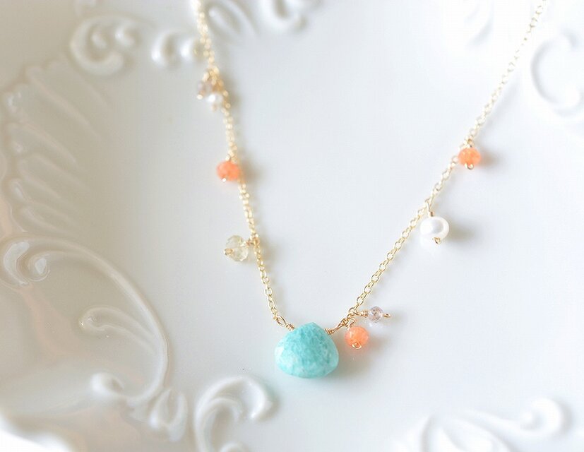 オレンジカラージェイド、ラブラドライト、淡水パール