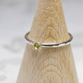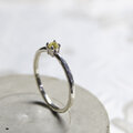 透明感があり、淡く優しいイエローの色味が魅力的なシトリン(直径3mm)を石座にセットし、シャープなフォルムの爪留めで都会的な印象のアクセサリーに仕上げています。甘すぎないミニマルなデザインのジュエリーなのでデイリーユースとしてカジュアル・オフィススタイルにお使い頂けます。仕上げには不均一な凸凹感が特徴の槌目模様を施しており、シンプルながらもさりげない存在感があります。トレンド・流行のスタイルにも合わせやすく、お手持ちのリングとの重ね付けでお使い頂くこともオススメです。