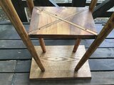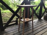 下の棚は、4本の脚に対角線状の支えを入れ、その上にイチョウの板を載せていま