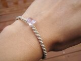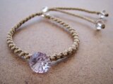 ピンクアメジスト 丸コンケーブカット 1粒をロウビキ紐を使ってマクラメ編みしたブレスレットです。