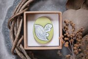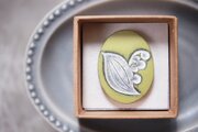 陶土にオリジナルの草花の消しゴムはんこを捺したブローチです。