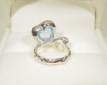 ハートをモチーフにした枠に、ハート形にカットされたブルートパーズを留めた指輪です。