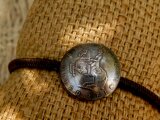 オーストリア共和国5シリングコインをヘアゴムと芯合わせし、コンチョ型に加工した作品です。